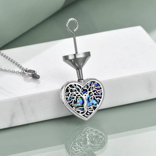 Tree of Life Sterling Silver and Abalone Shell Heart Urn Locket