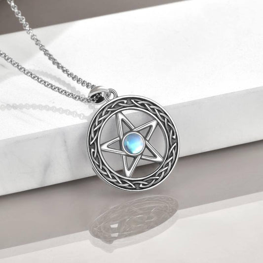 Pentagram Sterling Silver Celtic Moonstone Necklace