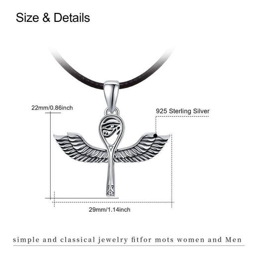 Egyptian Ankh Angle Wing Sterling Silver Pendant