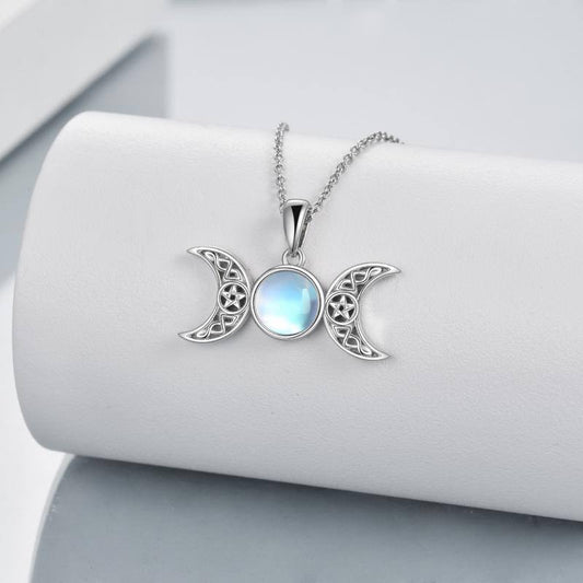 Triple Moon Goddess Sterling Silver Moonstone Pendant