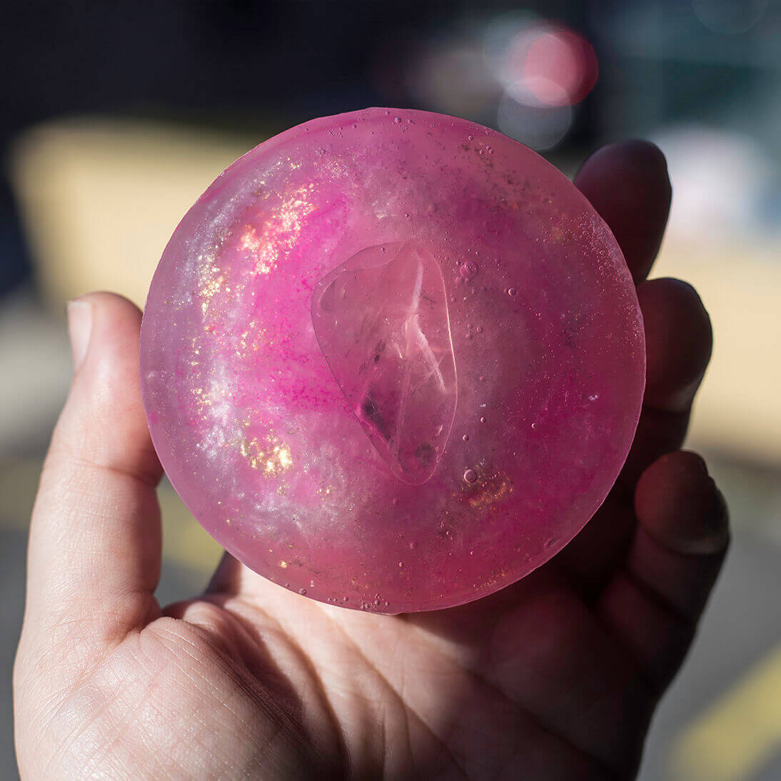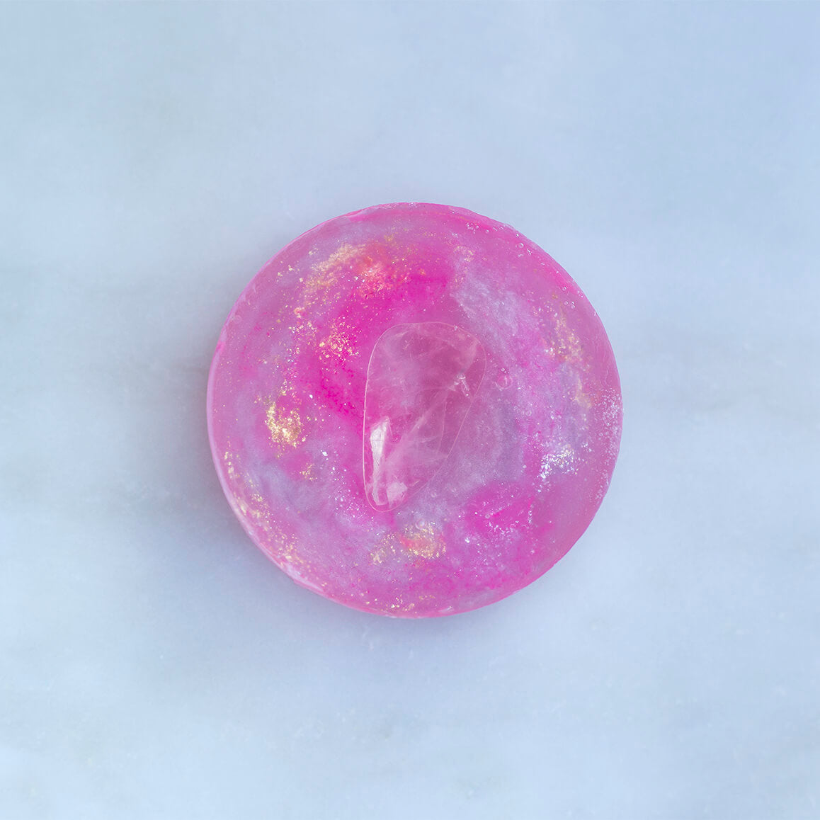 Embedded inside is a Rose Quartz tumbled crystal. Rose quartz is known as the stone of love. It restores trust and harmony in relationships, encouraging unconditional love. It opens the heart at all levels to attract love. Self-love, friendship, family, and romantic. It promotes acceptance and self worth.