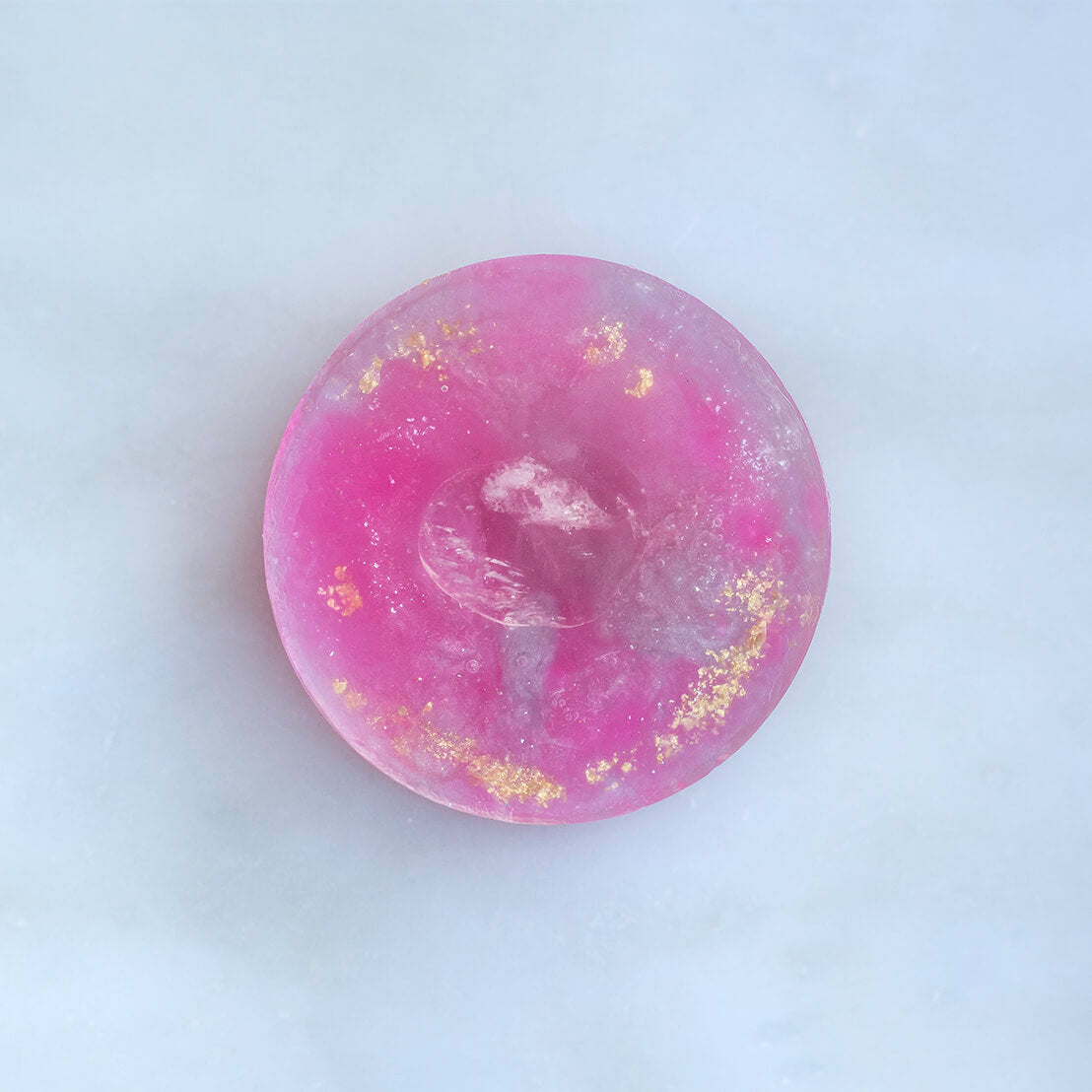 Ingredients: Sorbitol, Propylene Glycol, Sodium Laureth Sulfate, Stearic Acid, Water, Sodium Hydroxide, Myristic Acid, Sodium Cocoyl Isethionate, Glycerin, Lauric Acid, Rose Kaolin Clay, White Mica, Pink Oxide, Silver Mica, Blue Pigment, Biodegradable Glitter, Rose fragrance, Lavender eo, Ylang Ylang eo