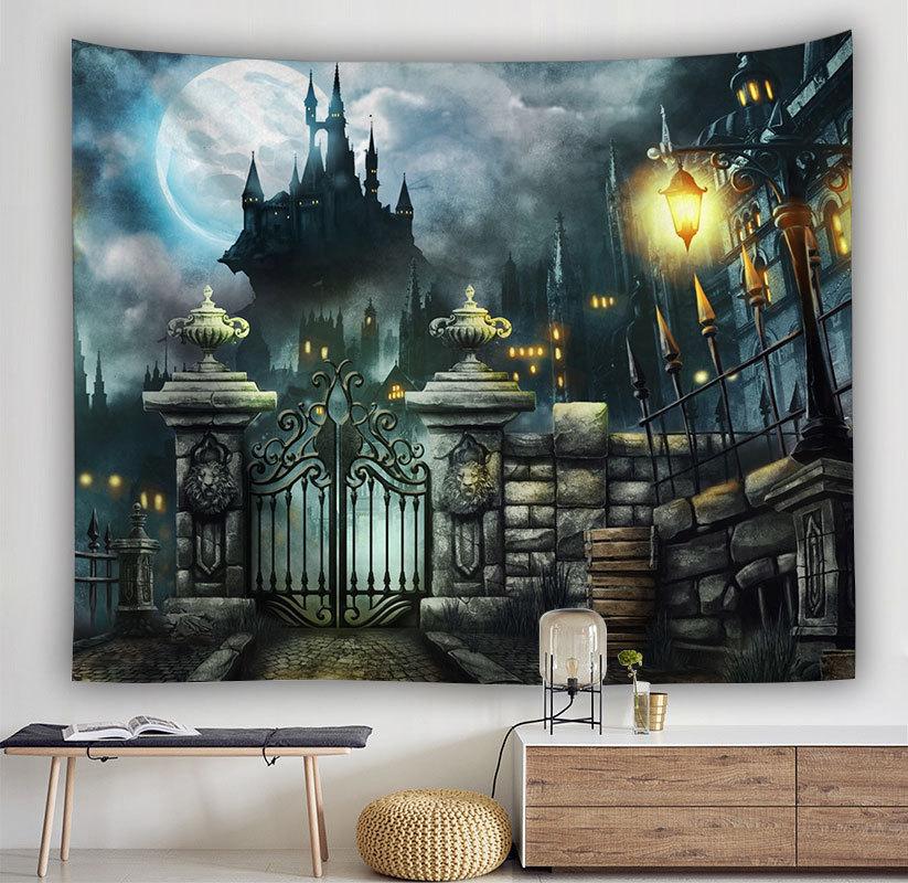 Invite a sense of mystery and awe in your space with this cool Arcane City tapestry. Arcane city, or Dracula's castle? Maybe its Elon Musks house, or Jeff Besos vacation home? Obviously you can create any backstory you want when your guests compliment you on this wonderful wall hanging.
