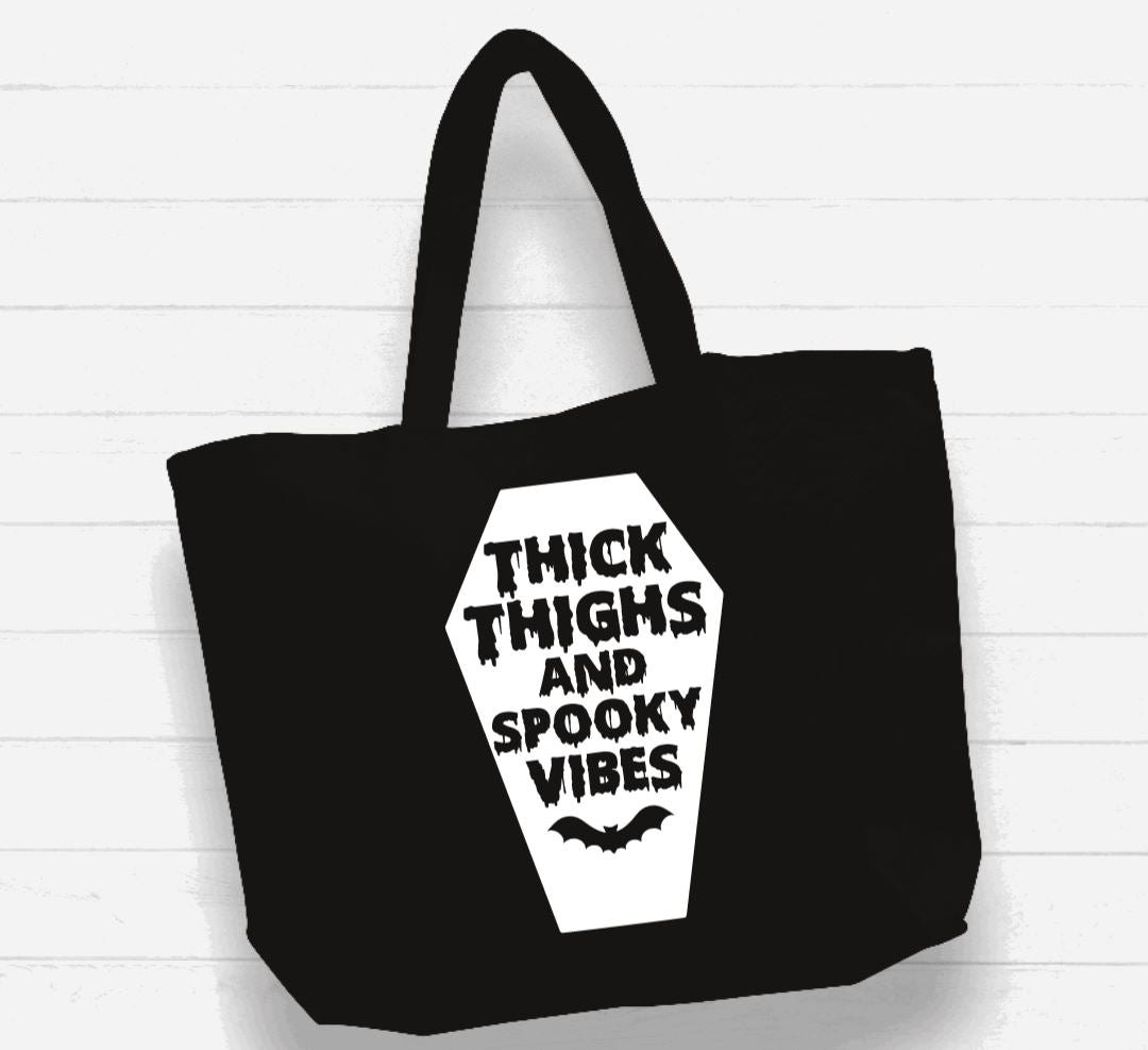 Beach Bag / XL Tote Bag - "thick thighs and spooky vibes"