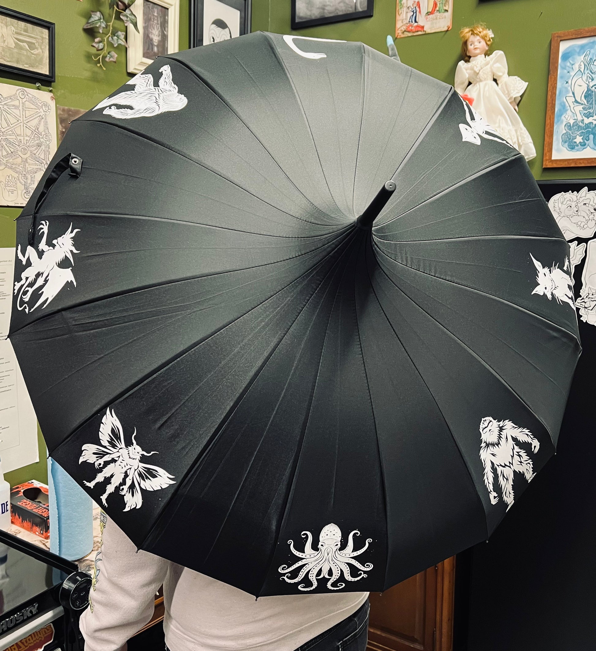 Keep the rain away with our brand new spooky umbrellas! 16 panels for nice large coverage.