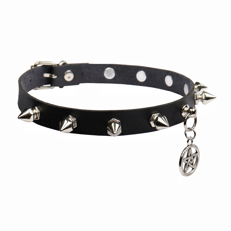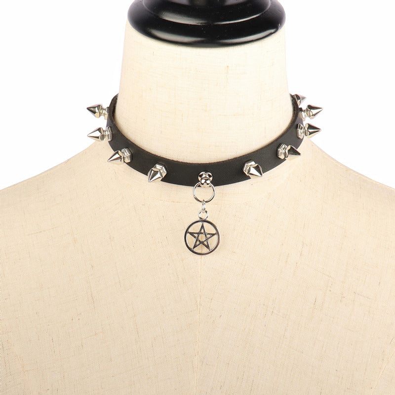 Another one of our Pentagram chokers, ...but this one has spikes! This is useful if you would like to prevent getting hickeys on your neck from demonic rough sex.