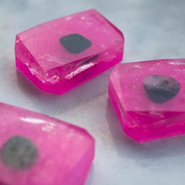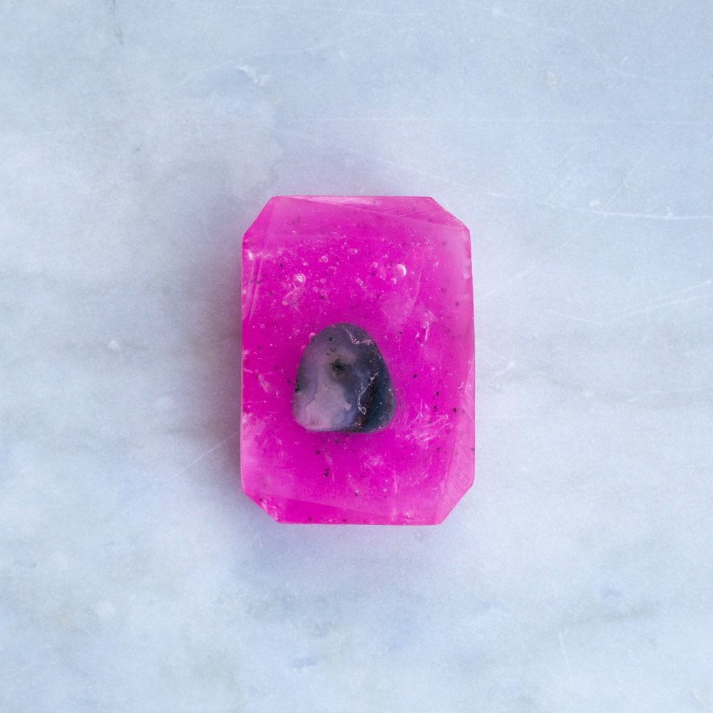 Inspired by Pitaya (Pink Dragon fruit) which is often called "Fountain of Youth" because of its anti-aging properties. This bar is scented with dragonfruit and pear and filled with poppy seeds for a gentle exfoliation.