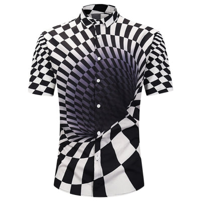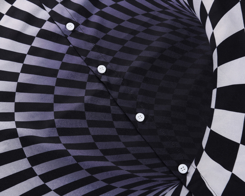 Trip people dizzy when they lay their eyes on this 3D illusion Vortex button down shirt. You can say the vortex leads to your empty stomach, or your dark heart, for maximum effect.