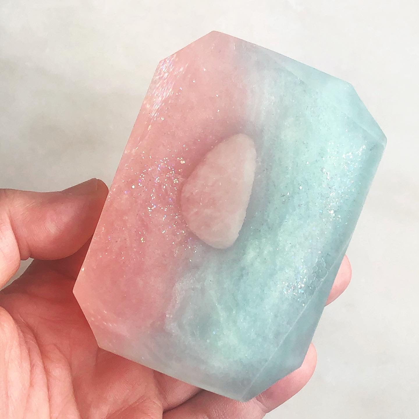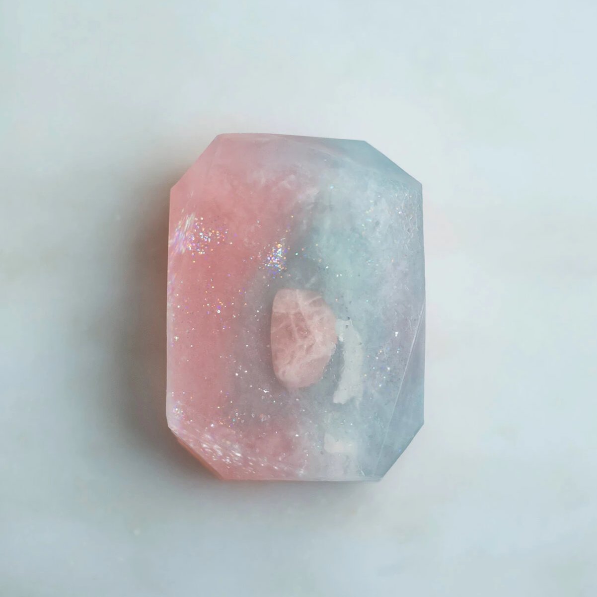Embedded with a Rose Quartz Crystal, which is the stone of universal love. This bar promotes love of any kind. SELF LOVE, family and romantic. Calming and reassuring, it helps to comfort in times of grief. Dispels negativity. It promotes acceptance and self worth. It speaks directly to the Heart Chakra, dissolving emotional wounds, fears and resentments, and circulates a Divine loving energy throughout the entire aura. Made with Kaolin clay and scented in soothing blend of Clary Sage and citrus.