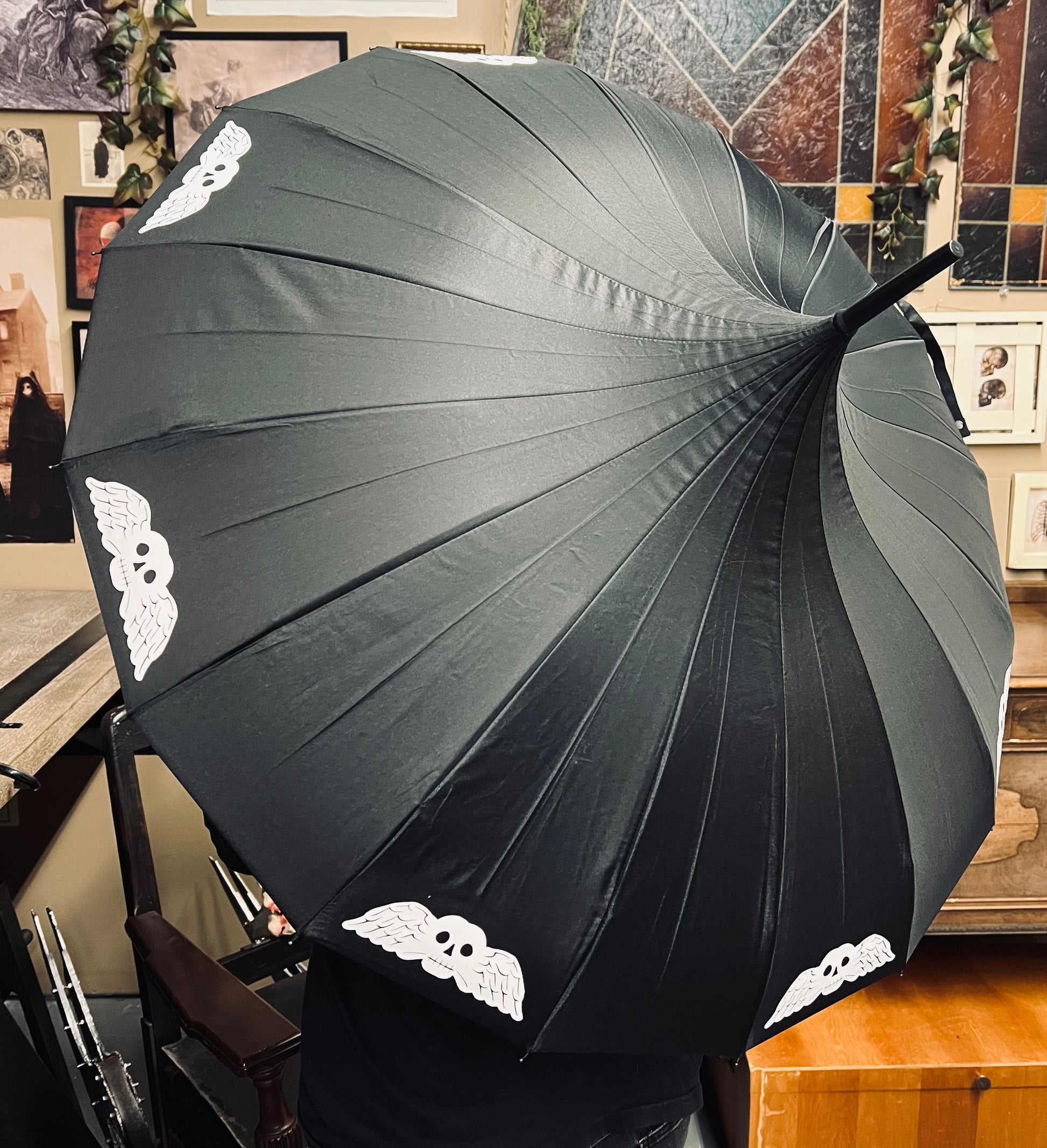Keep the rain away with our brand new spooky umbrellas! 16 panels for nice large coverage.