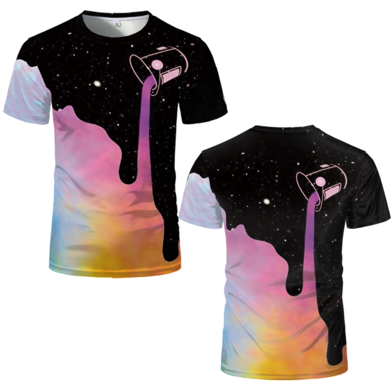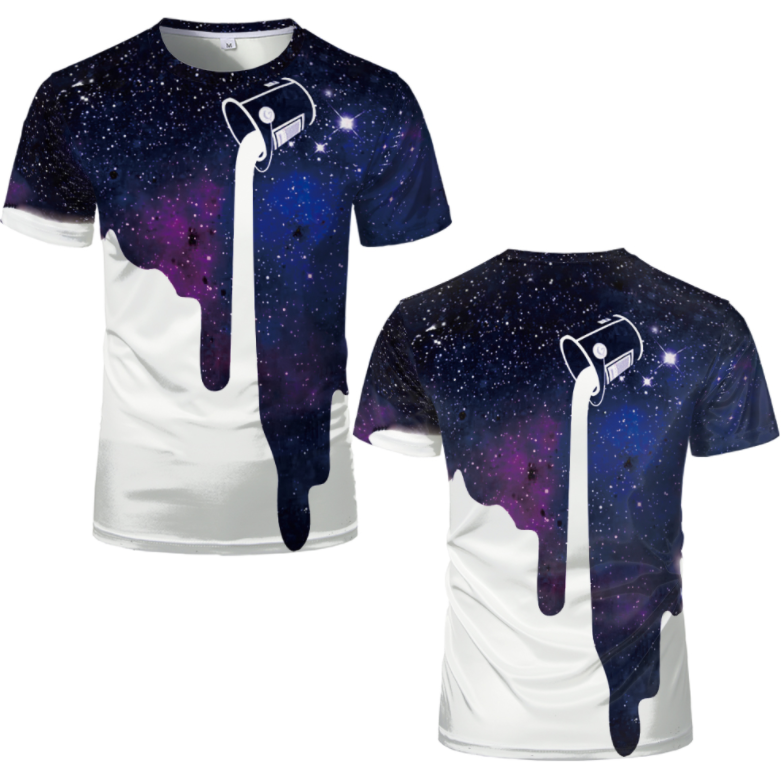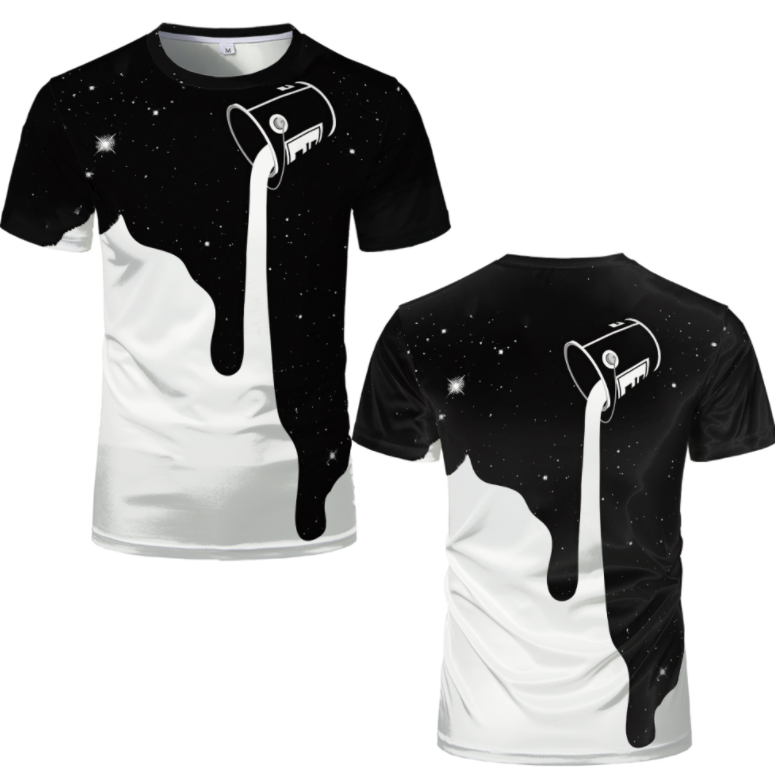 Draw people in with this bucket of paint spilled on your shirt. Visit esoteric topics discussing how much paint is left in the bucket, or if its even paint at all. Maybe its a spiritual outpouring?