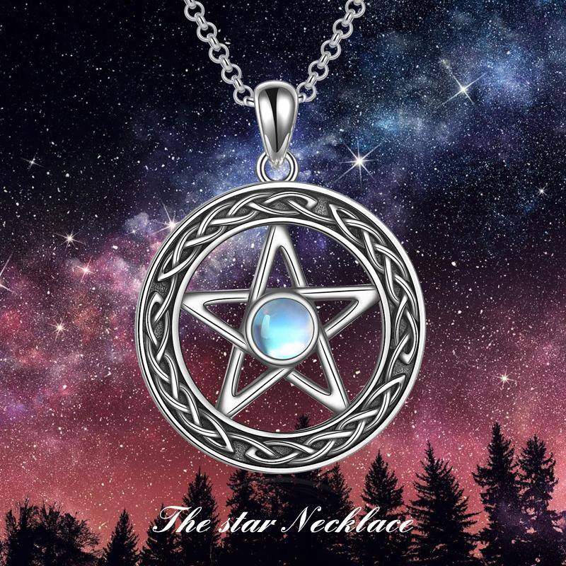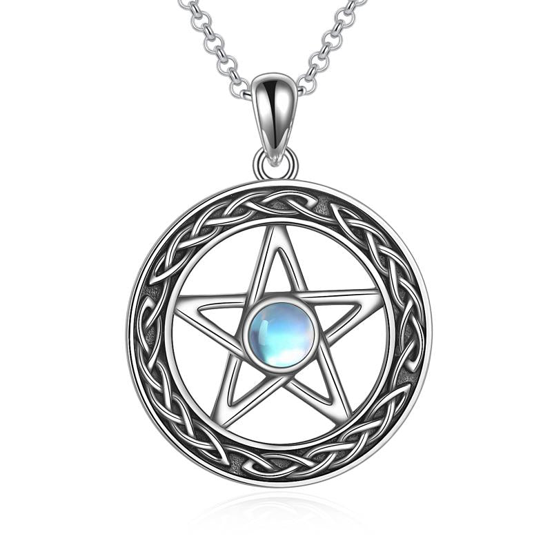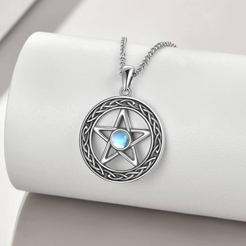 Pentagram Sterling Silver Celtic Moonstone Necklace