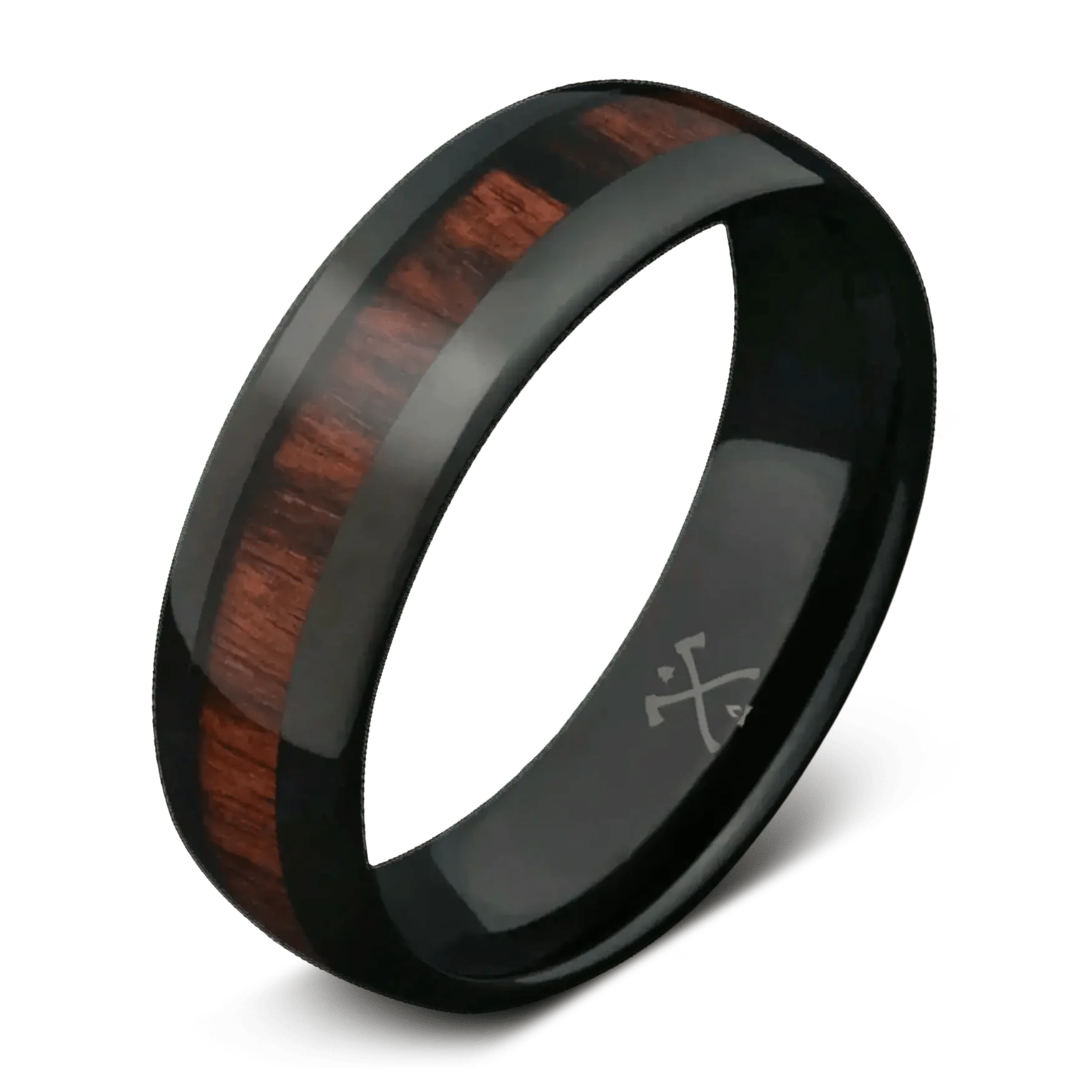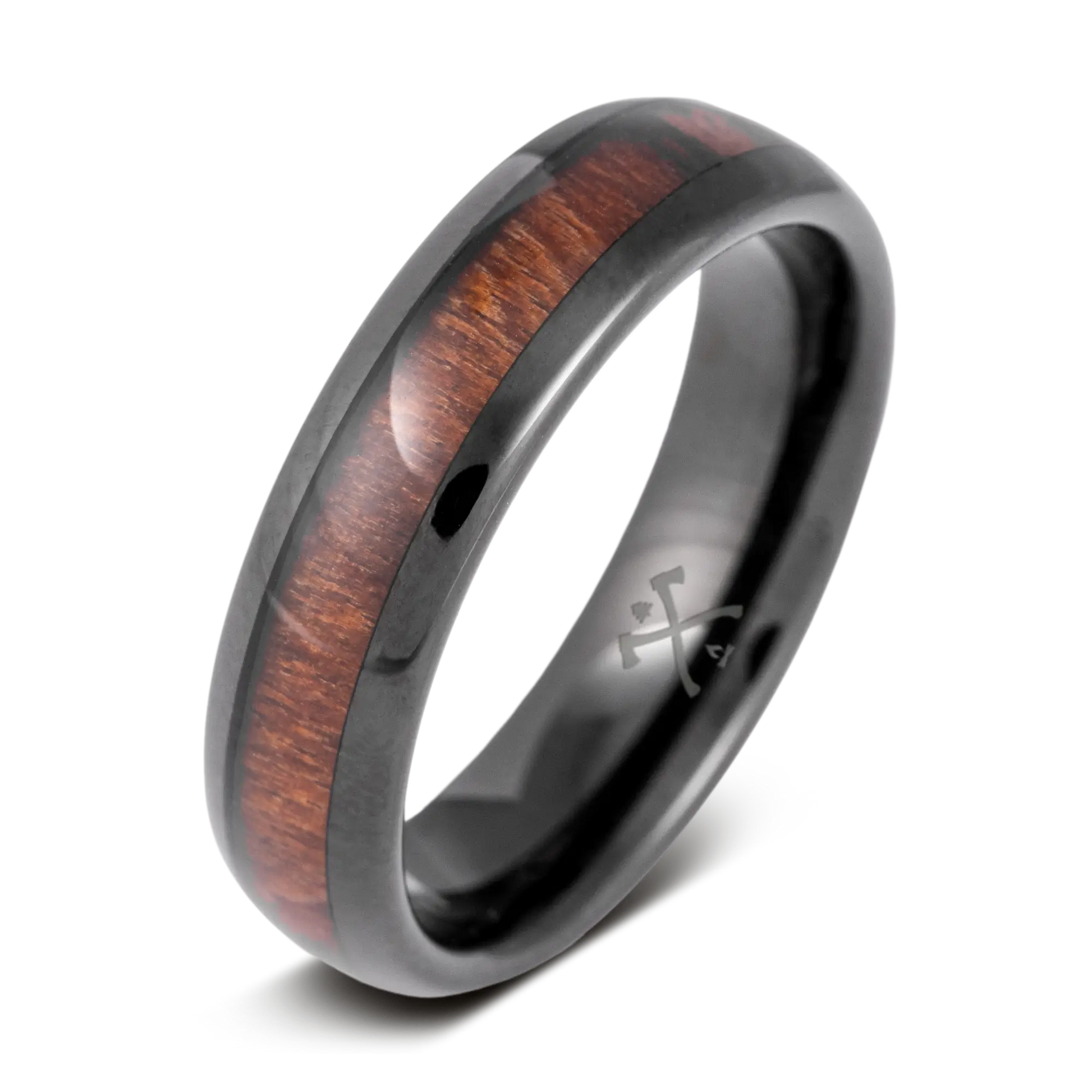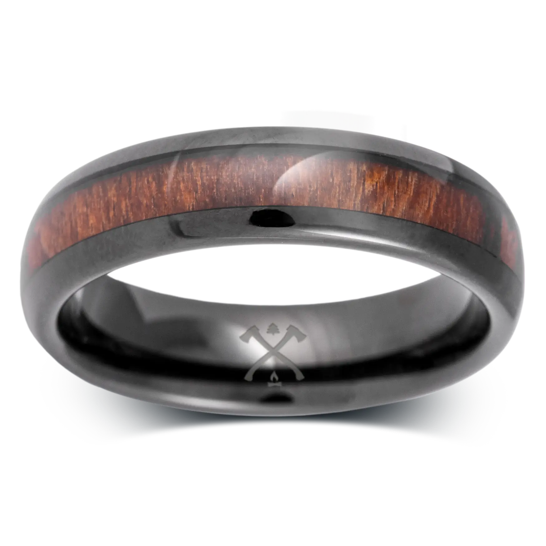 - Black Plated Tungsten with Koa Wood Inlay