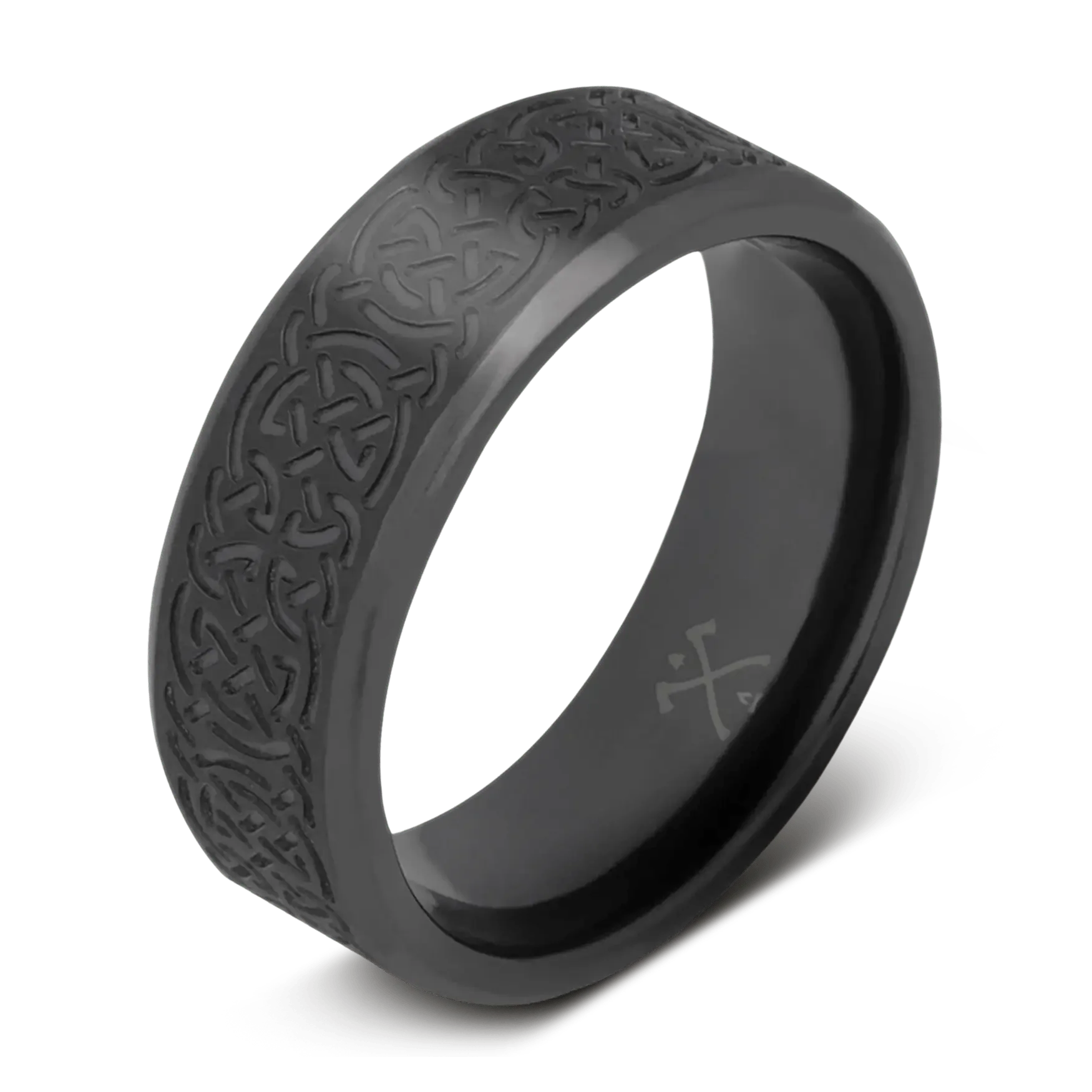 - Black Zirconium (charcoal gray color) with Celtic Knot Pattern