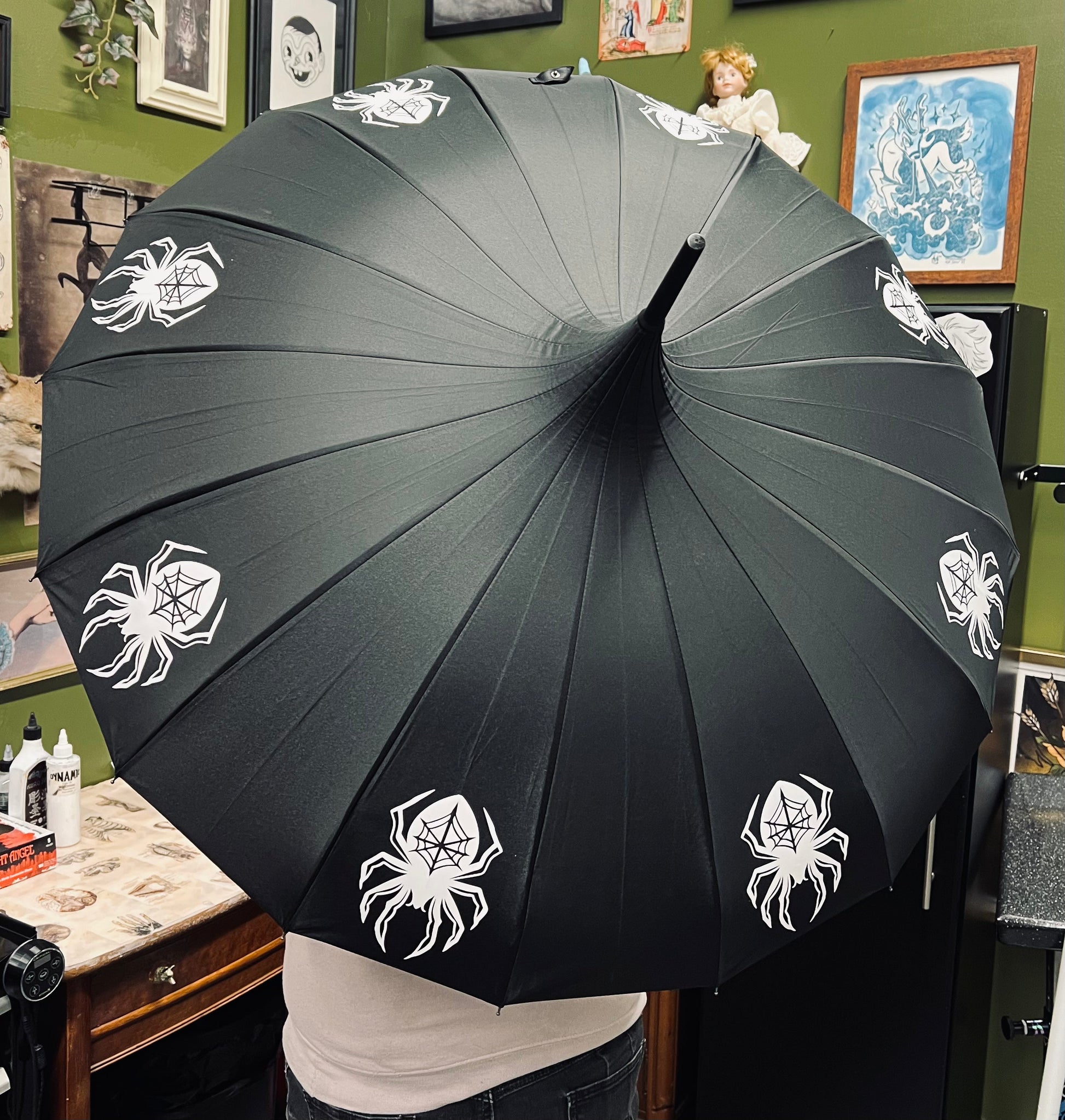 Keep the rain away with our brand new spooky umbrellas! 16 panels for nice large coverage.