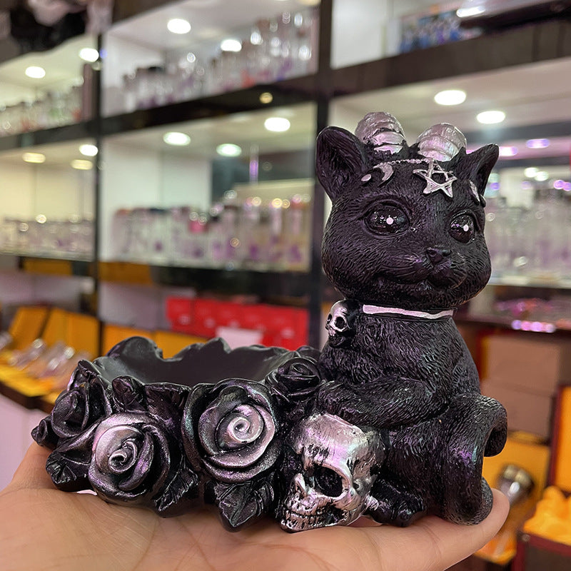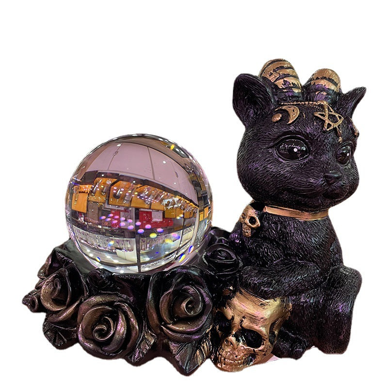 Behold! A black cat and its majesty awaiting its return to your home to hold your crystal ball with its paws of protection!